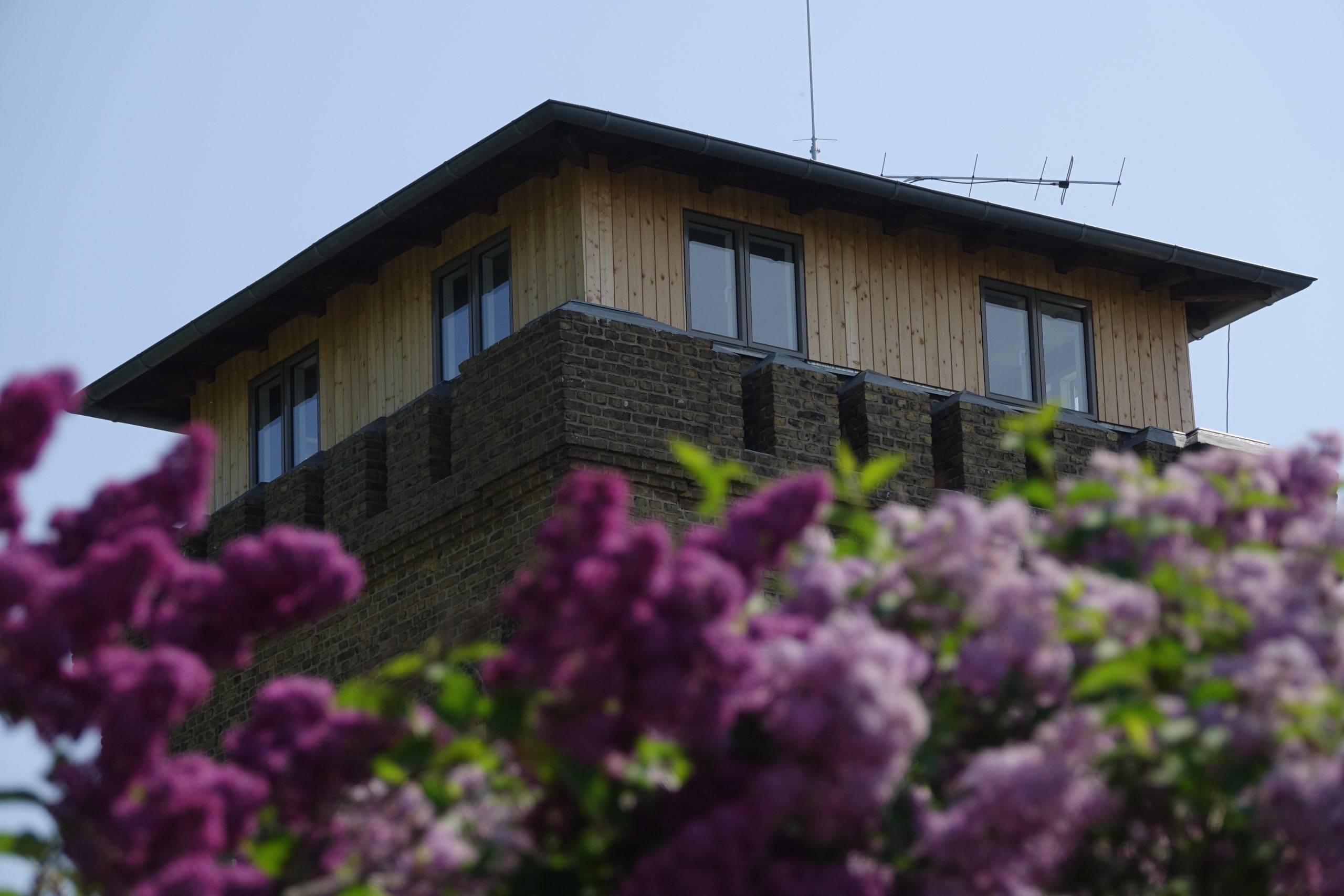 Frühlingsimpressionen Flieder an der WachtelburgFrühlingsimpressionen - KastanienblüteSanierter BurgturmFrühlingsimpressionen - Turm NordseiteDie Nordwestseite des Burgturms mit renoviertem Burgturmaufsatz - Funkerebene