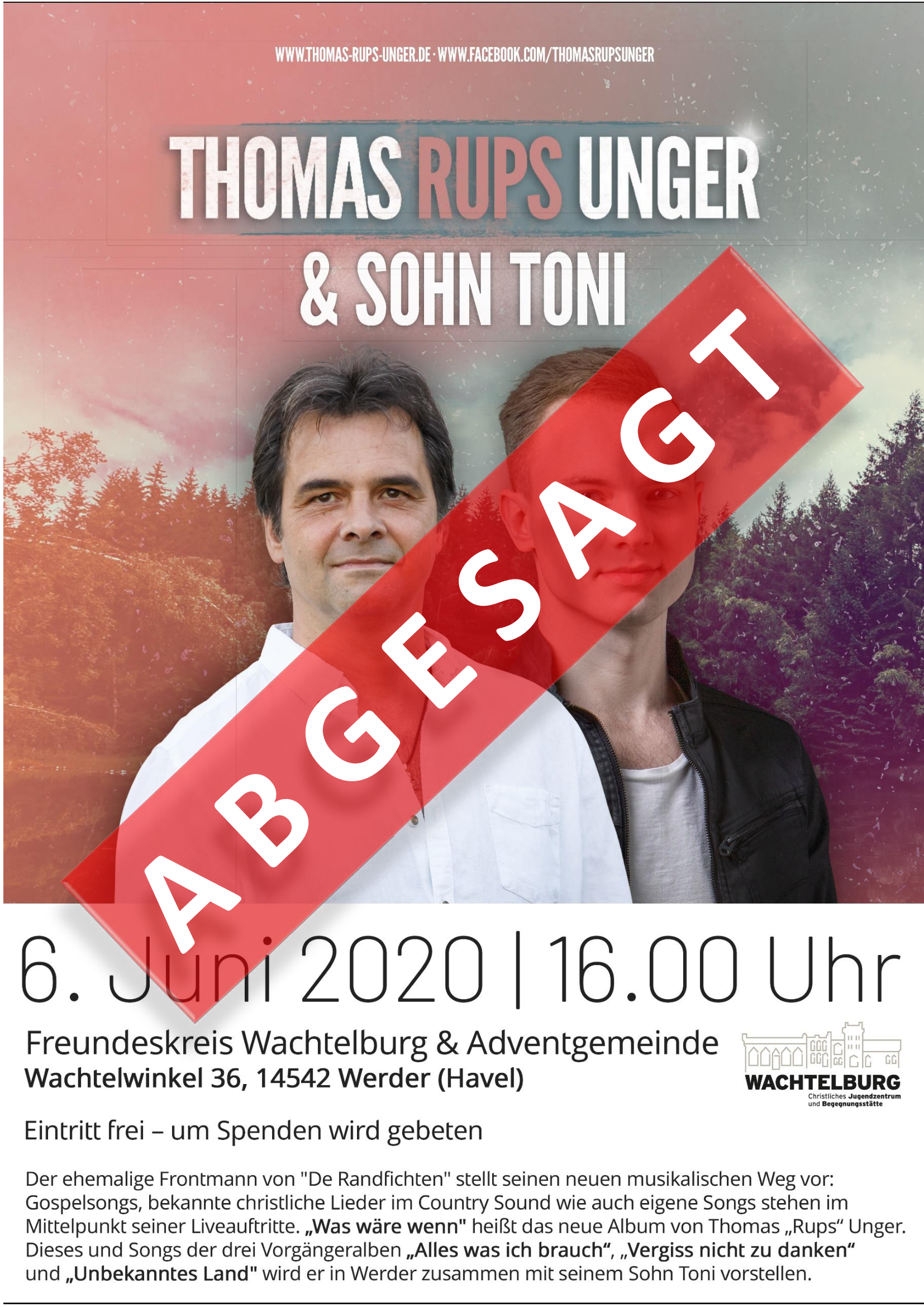 Das geplante Konzert von Thomas Rups Unger und seinem Sohn Toni am 6.6.2020 müssen wir leider absagen.
