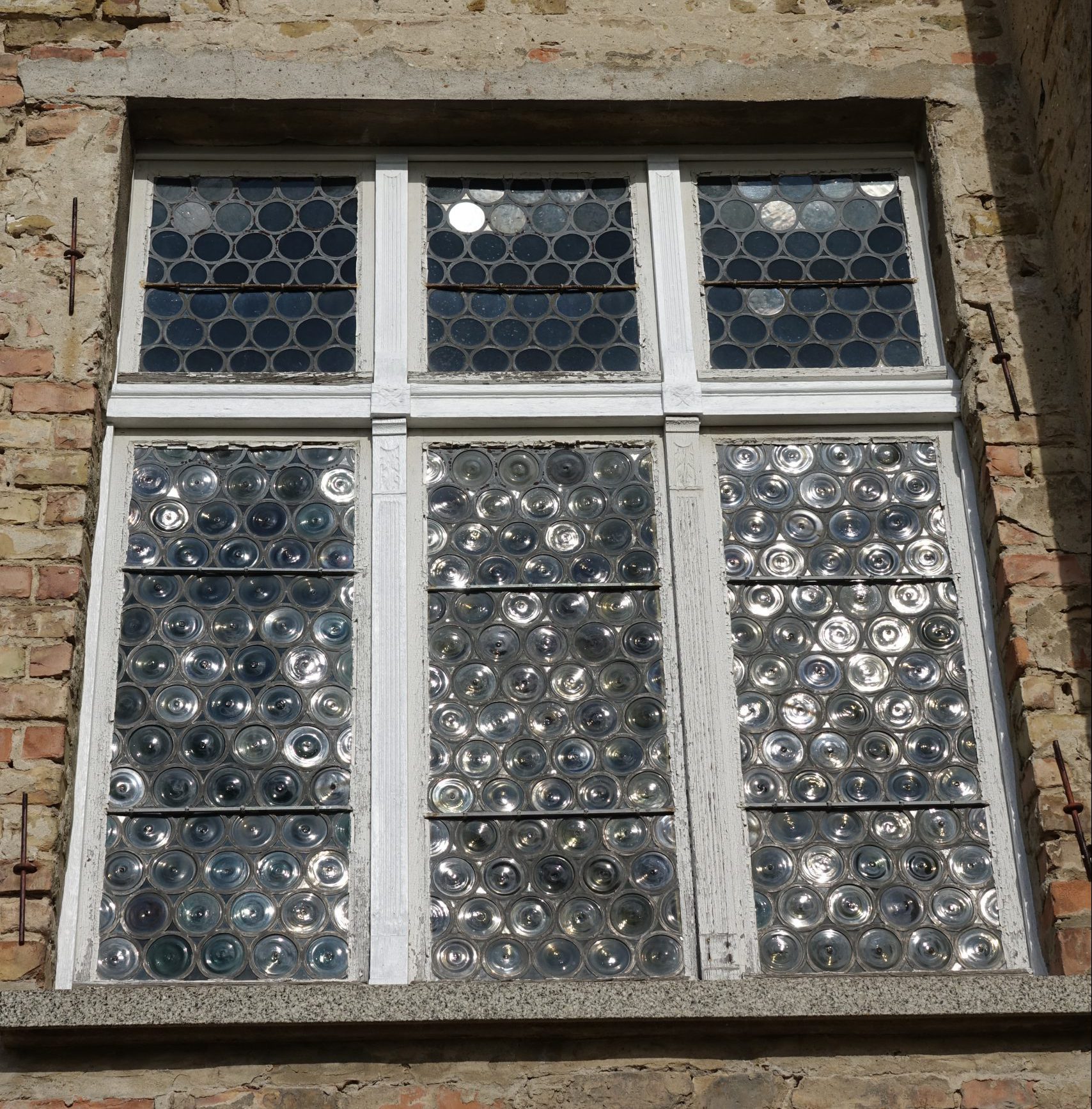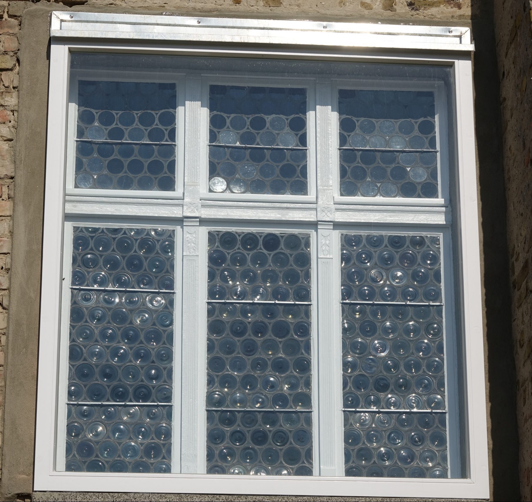 Gut zu erkennen ist die Aufarbeitung des Rahmens dieses historischen Fensters und die vorgesetzte Scheibe zum Schutz vor Witterungsbedingungen.