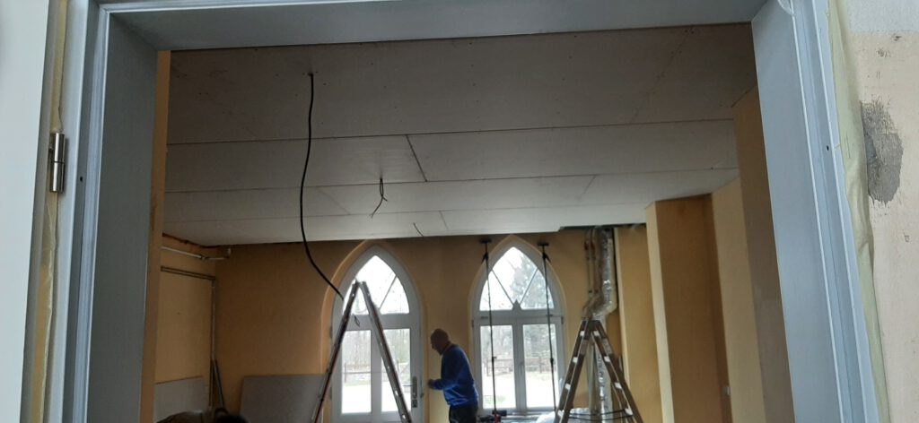 Die ehemals „schwarze Küche“ bekommt hier eine neue Decke und sieht nun gleich viel freundlicher aus.